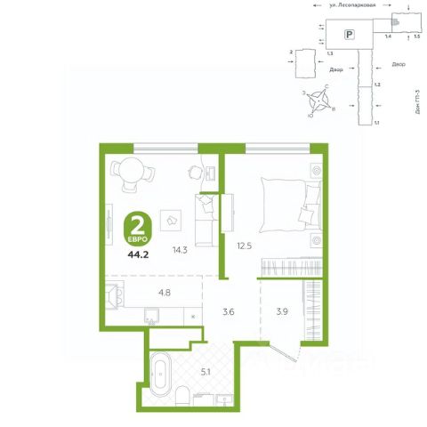 Квартира располагается в ГК "Чистые Пруды" от "Паритет девелопмент". Это флагманский проект компании в Тюмени. Расположение вдали от шумных улиц и оживленного центра создает ощущение жизни на природе и окружает тишиной и спокойствием. Есть вся необходимая социальная и коммерческая инфраструктура: магазины и сфера услуг на первых этажах. Школы, сады, поликлиника, парки в шаговой доступности. Квартал строится в районе Новой Лесобазы. Рядом выезд на объездную, что существенно экономит время. Поездка до центра города на автомобиле занимает 15-20 минут. Городские кварталы "Чистые Пруды" сформирован из домов переменной этажности и многоуровневых паркингов. Ввод 1 очереди строительства запланирован на II кв. 2028 года. Всё благоустройство квартала представлено двумя функциональными зонами: приватная внутри дворовая и общественная. Каждый закрытый двор имеет выход на единую променадную зону - бульвар. Концепция благоустройства основана на принципе модульности, что формирует основную идею приватности. Приватность проекта подчеркивает его особенный климат внутри. Модульное благоустройство позволит максимально эффективно использовать пространство двора и удовлетворить потребности различных категорий жителей. В квартирах базово выполнена улучшенная черновая отделка, которая включает в себя: выровненные стены, стяжка пола с шумоизоляцией, горизонтальная разводка отопления, установлены счетчики с телеметрией, окна с 5-камерным профилем и надежные входные двери. При желании можно добавить ремонт от застройщика и включить его в стоимость ипотеки, что позволит сэкономить на стройматериалах и переехать сразу после получения ключей. Характеристики квартиры: этаж - 7 количество комнат - 2 номер помещения - 329 площадь квартиры - 42,6 кв.мГармоничные пропорции и большие окна наполняют пространство светом, создавая уютную атмосферу. Умное зонирование позволяет удобно организовать как рабочую, так и жилую зоны, что особенно важно для современных жителей. Санузел спроектирован с учетом всех потребностей: здесь есть ванна и место для стиральной машины. Каждый метр квартиры используется с максимальной эффективностью, что делает эту планировку отличным выбором для тех, кто ценит комфорт и удобство.