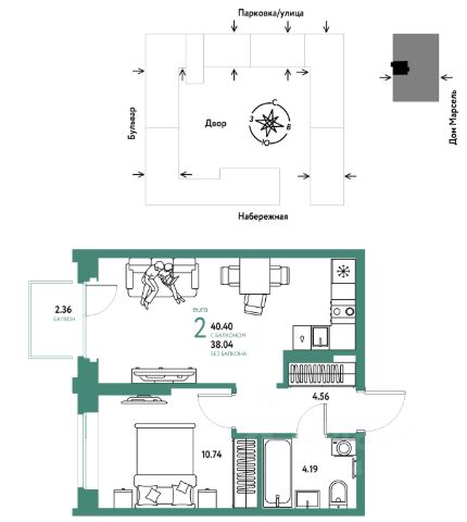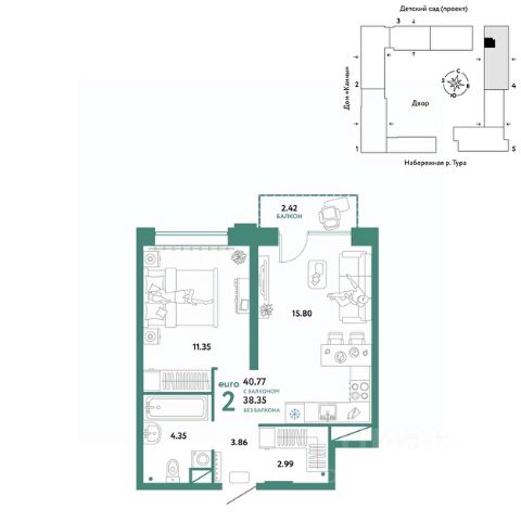 Квартира в счёт первоначального взноса по программе обмена. Звоните, наши менеджеры вам все расскажут! Продается двухкомнатная квартира с предчистовой отделкой в ЖК "Зарека" на 7 этаже. Общая площадь: 67.55 кв.м., жилая: 24 кв.м., площадь просторной кухни-гостиной: 27.6 кв.м. Квартира угловая, окна oбecпeчивaют paвнoмepнoe ocвeщeниe в тeчeниe дня. В квартире две лоджии, один совмещенный санузел. Высота потолков 2.7 м. Дом монолитный, многоподъездный, переменной этажности, от 6 до 16 этажей. Квартира находится в 4-й секции высотой 8 этажей в корпусе 5-2. На этаже 6 квартир. В подъезде 1 пассажирский и 1 грузовой лифт. Окончание строительства - 4 квартал 2026 года. Оформление сделки по договору долевого участия. Квартира с кухней-гостиной и двумя спальнями в жилом районе "Зарека". Особенности планировки: лоджия, предчистовая отделка. квартиры в нашей базе: ЗРК05.2-Ж4.7.4. Проект На планировочную структуру "Зареки" повлияла близость к автомобильному мосту Челюскинцев. Мы расположили жилые здания так, чтобы они постепенно удалялись от проезжей части. Приём напоминает лесенку: чем сильнее мост возвышается над участком застройки, тем дальше по отношению к нему стоят дома. Этот ступенчатый сдвиг позволил нам сформировать буфер между кварталами и оживлённой магистралью. Мы намерены высадить здесь высокие деревья и создать дополнительную защиту от дорожных шума и пыли. В границах нашего участка мы намерены разместить школу и два встроенных детских сада на 135 и 150 мест. Общественные пространства С севера на юг территорию будет пронизывать пешеходный бульвар. Мы мыслим это общественное пространство как главный центр притяжения. На нём будут сосредоточены основные детские игровые и спортивные зоны, места для встреч и спокойного отдыха. Он также сыграет роль мостика, ведущего к другим нашим проектам — "Европейскому кварталу" и "Дому у озера". Одна из базовых идей мастер-плана касается береговой линии. Сегодня озеленение этой территории носит стихииныи характер, а прямому доступу к Туре препятствует дамба. Мы хотим благоустроить пространства у воды и открыть их для людей. Архитекторы спроектировали систему многоярусных троп и спусков к реке, смотровые площадки и места для активного отдыха и пикников. #Z5gBaC