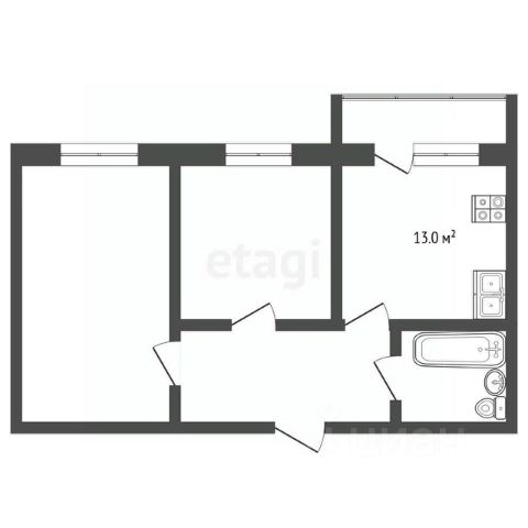 Квартира находится на 7 этаже, жилая площадь квартиры 21.6 м2, площадь просторной кухни — 19.5 м2. Среди особенностей планировки — изолированные комнаты с окнами на одну сторону, 1 совмещённый санузел.