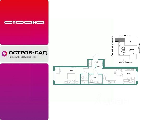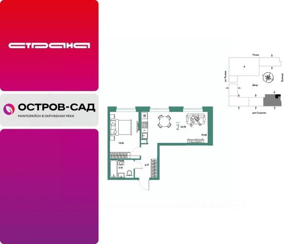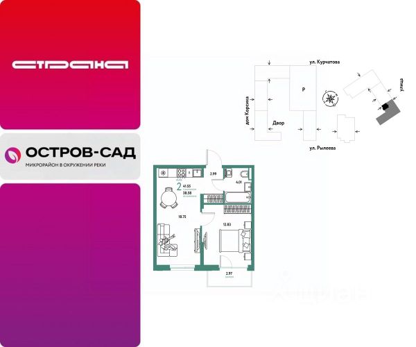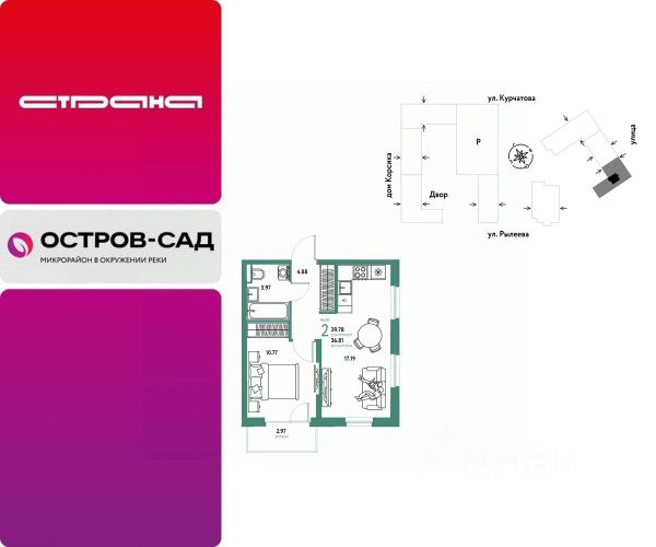 Новая квартира в ЖК "Остров-сад" напрямую от федеральной группы компаний "Страна Девелопмент". Финансовый партнер — Сбербанк России. Продается 2комнатная квартира на 8 этаже от застройщика Страна Девелопмент. Площадь квартиры 35,37 кв. м. ЖК "ОСТРОВ-САД" Жилой комплекс ЖК "Остров-сад" — новый квартал в районе ДОК в Тюмени недалеко от центра. Внутри ЖК планируется несколько школ и детсадов, торговая галерея, своя набережная, закрытые дворы-сады, несколько подземных и многоуровневых паркингов и пешеходный бульвар. Архитектура комплекса отсылает к истории ДОКа — отделка из красного кирпича, акцентные цвета штукатурки и необычная ступенчатая форма зданий. Всё для комфортной жизни на своём "острове" рядом с центром Тюмени. ПРЕИМУЩЕСТВА Квартиры с готовым ремонтом, возможность приобрести квартиру с кухонным гарнитуром и техникой. Развитое жилое пространство — закрытые дворы-сады, свои набережная и бульвар, торговая галерея на 1-м этаже, рядом детсады, школы и поликлиника. Служба охраны и видеонаблюдение в доме и во дворе 24/7. Несколько многоуровневых и подземных паркингов с охраной. ОТДЕЛКА Необходимые работы уже выполнены: подведены холодная, горячая вода и электричество, установлены батареи. В квартире не проводились отделочные работы: не выровнены стены и пол. ДИЗАЙНЕРСКАЯ ОТДЕЛКА В ЖК "Остров-сад" есть квартиры с готовым ремонтом. Пять вариантов на выбор в разных цветовых решениях. В ремонт также включены светильники, межкомнатные двери и даже кондиционер. Можно выбрать отдельно ремонт в ванной, для вас 4 стильных варианта с сантехникой. СПОСОБЫ ПОКУПКИ Сотрудники "Страна Девелопмент" будут сопровождать вас на каждом этапе сделки, помогут получить одобрение по ипотеке или снизить ежемесячный платеж. - ипотека - материнский капитал - 100% оплата наличными