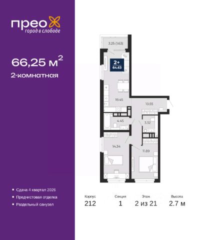 Дом монолитный, черырехподъездный, переменной этажности, от 14 до 21 этажей. Квартира находится в 1-й секции высотой 21 этаж в корпусе 211. На этаже 8 квартир. В подъезде 1 пассажирский и 1 грузовой лифт. Окончание строительства - 4 квартал 2026 года. Оформление сделки по договору долевого участия.