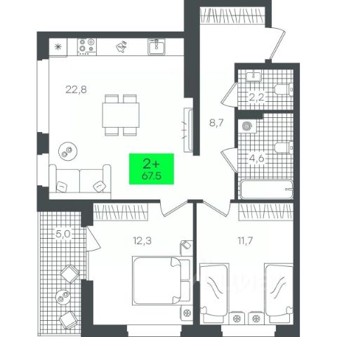 Квартира в счёт первоначального взноса по программе обмена. Квартира с кухней-гостиной и двумя спальнями в Октябрьском на Туре. Особенности планировки: гардеробная, лоджия, мастер-спальня, предчистовая отделка. квартиры в нашей базе: ОКТ09-Ж1.8.8. Район Проект расположен на берегу реки, в одном из самых живописных и экологичных районов Тюмени. За последние годы облик района изменился. По соседству с индивидуальной застройкой выросли многоквартирные дома. При проектировании "Октябрьского на Туре" нашей приоритетной задачей стало сохранение природного ландшафта: мы постарались деликатно вписать в него современную архитектуру. Квартал удачно расположен с точки зрения дорожной инфраструктуры. На автомобиле путь до центра города составит 15 минут. Добраться до набережной и главных тюменских достопримечательностей можно и на общественном транспорте. В пешей доступности находится автобусная остановка. Проект По мастер-плану здесь будет восемь домов. Ядро застройки составляют замкнутые кварталы переменной этажности. Их высотность понижается по мере приближения к реке. На углах участка мы разместили башни-доминанты. Одной из достопримечательностей квартала станет парк на Туре — здесь появится зеленая зона протяженностью около 6 километров для пеших и велопрогулок. Смысловая ось квартала — широкая главная улица с высаженными вдоль неё высокими деревьями. Они создают тень и работают как шумо- и пылезащитные экраны. Это место сосредоточения основных пешеходных и транспортных потоков, на сторону которых мы ориентировали большинство коммерческих помещений. Отсюда жители могут свернуть на тихие соседские улицы и попасть на внутриквартальную площадь — ещё одну точку притяжения.Квартира в счёт первоначального взноса по программе обмена. #2Ss51I