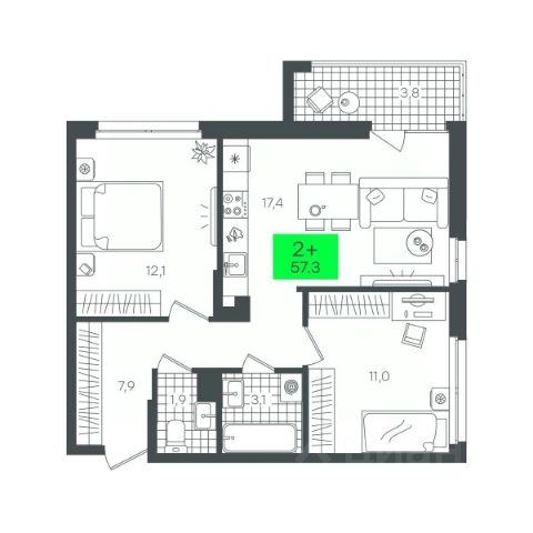 Новая квартира в ЖК "Остров-сад" напрямую от федеральной группы компаний "Страна Девелопмент". Финансовый партнер — Сбербанк России. Продается 2комнатная квартира на 8 этаже от застройщика Страна Девелопмент. Площадь квартиры 30,89 кв. м. ЖК "ОСТРОВ-САД" Жилой комплекс ЖК "Остров-сад" — новый квартал в районе ДОК в Тюмени недалеко от центра. Внутри ЖК планируется несколько школ и детсадов, торговая галерея, своя набережная, закрытые дворы-сады, несколько подземных и многоуровневых паркингов и пешеходный бульвар. Архитектура комплекса отсылает к истории ДОКа — отделка из красного кирпича, акцентные цвета штукатурки и необычная ступенчатая форма зданий. Всё для комфортной жизни на своём "острове" рядом с центром Тюмени. ПРЕИМУЩЕСТВА Квартиры с готовым ремонтом, возможность приобрести квартиру с кухонным гарнитуром и техникой. Развитое жилое пространство — закрытые дворы-сады, свои набережная и бульвар, торговая галерея на 1-м этаже, рядом детсады, школы и поликлиника. Служба охраны и видеонаблюдение в доме и во дворе 24/7. Несколько многоуровневых и подземных паркингов с охраной. ОТДЕЛКА Необходимые работы уже выполнены: подведены холодная, горячая вода и электричество, установлены батареи. В квартире не проводились отделочные работы: не выровнены стены и пол. ДИЗАЙНЕРСКАЯ ОТДЕЛКА В ЖК "Остров-сад" есть квартиры с готовым ремонтом. Пять вариантов на выбор в разных цветовых решениях. В ремонт также включены светильники, межкомнатные двери и даже кондиционер. Можно выбрать отдельно ремонт в ванной, для вас 4 стильных варианта с сантехникой. СПОСОБЫ ПОКУПКИ Сотрудники "Страна Девелопмент" будут сопровождать вас на каждом этапе сделки, помогут получить одобрение по ипотеке или снизить ежемесячный платеж. - ипотека - материнский капитал - 100% оплата наличными - рассрочка от застройщика 0%