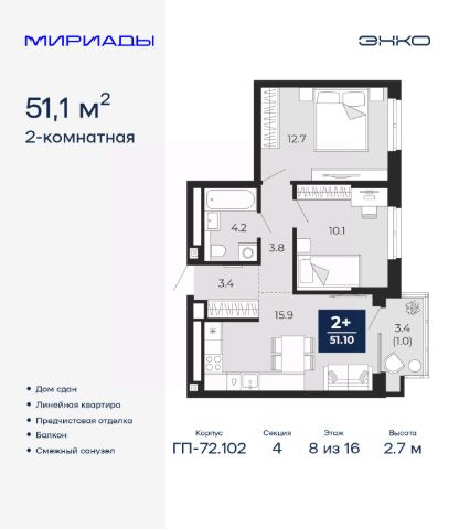 2-комн. квартира от застройщика с предчистовой отделкой в ЖК "Республики 205" на 8 этаже. Общая площадь: 57.4 кв.м. Высота потолков 2.7 м. Купить квартиру можно с помощью программ покупки от застройщика Брусника: - ипотека по эксклюзивной ставке с помощью в получении положительного кредитного решения через сервис ипотечный брокер; - квартиры в рассрочку без процентов от застройщика Брусника; - обмен квартиры на новую. Получить одобрение ипотеки или рассрочку, а также осуществить обмен квартир можно онлайн. Дом монолитный, многоподъездный, переменной этажности, от 7 до 25 этажей. Квартира находится в 1-й секции высотой 25 этажей в корпусе 3-1. На этаже 8 квартир. В подъезде 2 пассажирских и 1 грузовой лифт. Окончание строительства - 1 квартал 2027 года. Оформление сделки по договору долевого участия. Район Проект расположен в границах улиц Пермякова, Энергетиков, Воровского и Республики. До центра города — 10 минут на машине. Рядом — автомобильная развязка на пересечении улиц Пермякова и Республики. В шаговой доступности есть школы, детские сады, поликлиники, крупный торговый центр, автовокзал и несколько скверов. Проект "Республики 205" — это проект комплексного развития территории, уникальный по своему наполнению. Переосмысляя бывшую территорию завода медицинского оборудования, мы создадим новое место силы — микрорайон, насыщенный деловой, развлекательной, рекреационной, игровой, образовательной и медицинской инфраструктурой. До каждого полезного сервиса здесь можно будет дойти за 15 минут. Локальными центрами "Республики 205" будут общественные пространства — скверы, парки, бульвары и площади. В границах нашего участка мы намерены разместить школу, рассчитанную на 1550 учеников, два детских сада на 300 мест и встроенный детский сад на 100 мест. В одном из цехов бывшего завода расположится креативный кластер "Кузница". Он станет площадкой для нескольких институций — галереи, лектория, книжного магазина-библиотеки, кинобара и точек креативного pop-up-ритейла. Пешеходные бульвары внутри района соединят между собой улицу ресторанов, детские и спортивные площадки, событийную площадь и летний кинотеатр. Идентификатор квартиры по базе застройщика: РСП03. #ZsZbff