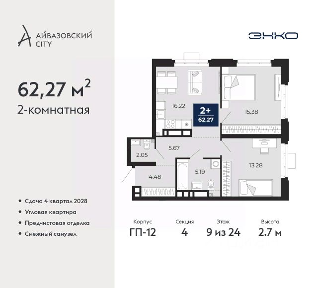 Cовременная двухкомнатная квартира предлагает впечатляющее сочетание стиля и функциональности. Просторная кухня-гостиная станет центром идеального вечера с друзьями или комфортным семейным уикендом. Здесь приятно провести время, наслаждаясь общением в светлом и просторном пространстве. Удобная и большая спальня предлагает достаточно места для размещения всей необходимой мебели и создания комфортной обстановки для отдыха. Это идеальное место для расслабления после долгого дня. Вместительная ванная комната оснащена всем необходимым, чтобы превратить ваши ежедневные процедуры в приятные моменты. Ее продуманный дизайн и эргономичное использование пространства обеспечивают комфорт и уют. Коридор с нишей под шкаф и гардеробной добавляет квартире практичности, позволяя организовать хранение вещей без лишнего беспорядка. Это делает квартиру удобной и комфортной в повседневном использовании. Эта квартира - идеальное решение для тех, кто ищет стильное и функциональное жилье в гармоничном пространстве.
