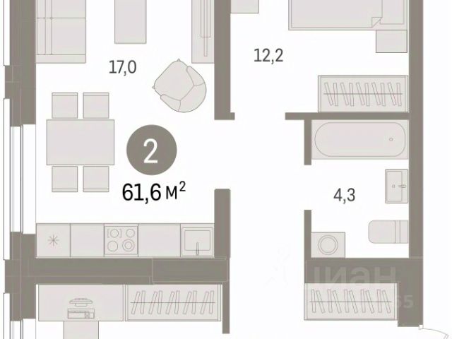 Продается 2-комн. квартира с предчистовой отделкой в ЖК "Айвазовский" на 9 этаже. Общая площадь: 61.1 кв.м., жилая: 21.3 кв.м., площадь просторной кухни-столовой: 17.1 кв.м. Комнаты изолированные, все окна выходят на одну сторону. В квартире одна лоджия, два совмещенных санузла. Высота потолков 2.72 м. Дом монолитный, многоподъездный, переменной этажности, от 9 до 24 этажей. Квартира находится во 2-й секции высотой 24 этажа в корпусе ГП-7. На этаже 7 квартир. В подъезде 1 пассажирский и 2 грузовых лифта. Окончание строительства - 3 квартал 2026 года. Оформление сделки по договору долевого участия. Новый жилой район располагается в живописном месте на берегу Туры в центральной части города. Принципиально новое пространство для жизни в центре современного города для тех, чьи мечты сбываются, кто нацелен на постоянный рост, перемены к лучшему для себя и своих близких. Каждая деталь ЖК "Айвазовский" вдохновляет и заряжает на новые свершения: авторская архитектура, сбалансированная продуманная инфраструктура, дизайнерские дворы со спортивными и детскими площадками, парковые зоны с фонтанами, водный канал, украшающий центральный прогулочный маршрут района и многое другое. В 2019 года проект стал лауреатом престижной премии Urban Awards 2019 в номинации "Лучший строящийся региональный жилой комплекс бизнес-класса". Главная особенность Айвазовский - соседство разных архитектурных школ в рамках одного дома. Изысканная классика, выразительная эклектика и оригинальный модерн - жить в одном из таких домов настоящий повод для гордости. Айвазовский это идеальное сочетание комфорта, технологий и развитой инфраструктуры. Вход в подъезд возможен с улицы и со двора. Отправляясь на работу или за покупками, жители могут выйти с внешней стороны дома, а для прогулки с ребенком со стороны двора. Экологически чистые материалы и энергосберегающие технологии, качественное освещение общественных зон, видеонаблюдение по всей территории жилого района (в том числе в подъездах, лифтах и в подземном паркинге), закрытые дворы с доступом только для жителей Айвазовский. Часть домов в Айвазовский будут оснащены подземным паркингом. Востребованный в нашем климатическом поясе формат хранения автомобилей защитит собственность владельца в любое время года. Аккредитация в банках: ПАО Банк "ВТБ", ОАО "Альфа-Банк", ПАО "Газпромбанк", "Сбербанк России", ПАО "Совкомбанк" и других. #26FS25
