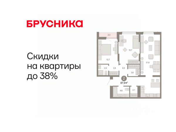 Квартира в счёт первоначального взноса по программе обмена. Квартира с кухней-гостиной и двумя спальнями в Октябрьском на Туре. Особенности планировки: вид во двор, мастер-спальня, предчистовая отделка, разнесённые спальни, терраса на крыше. квартиры в нашей базе: ОКТ-08-2-2.9.4. Район Проект расположен на берегу реки, в одном из самых живописных и экологичных районов Тюмени. За последние годы облик района изменился. По соседству с индивидуальной застройкой выросли многоквартирные дома. При проектировании "Октябрьского на Туре" нашей приоритетной задачей стало сохранение природного ландшафта: мы постарались деликатно вписать в него современную архитектуру. Квартал удачно расположен с точки зрения дорожной инфраструктуры. На автомобиле путь до центра города составит 15 минут. Добраться до набережной и главных тюменских достопримечательностей можно и на общественном транспорте. В пешей доступности находится автобусная остановка. Проект По мастер-плану здесь будет восемь домов. Ядро застройки составляют замкнутые кварталы переменной этажности. Их высотность понижается по мере приближения к реке. На углах участка мы разместили башни-доминанты. Одной из достопримечательностей квартала станет парк на Туре — здесь появится зеленая зона протяженностью около 6 километров для пеших и велопрогулок. Смысловая ось квартала — широкая главная улица с высаженными вдоль неё высокими деревьями. Они создают тень и работают как шумо- и пылезащитные экраны. Это место сосредоточения основных пешеходных и транспортных потоков, на сторону которых мы ориентировали большинство коммерческих помещений. Отсюда жители могут свернуть на тихие соседские улицы и попасть на внутриквартальную площадь — ещё одну точку притяжения.Квартира в счёт первоначального взноса по программе обмена. #ZZduC9