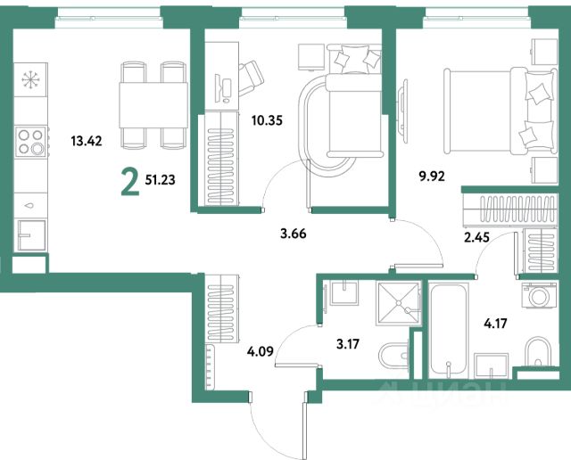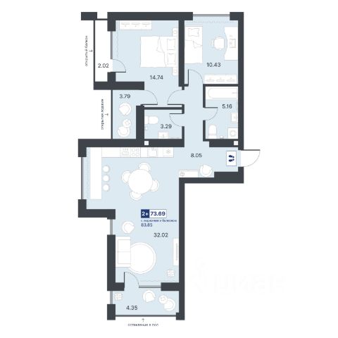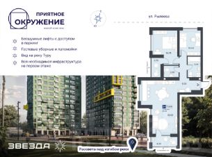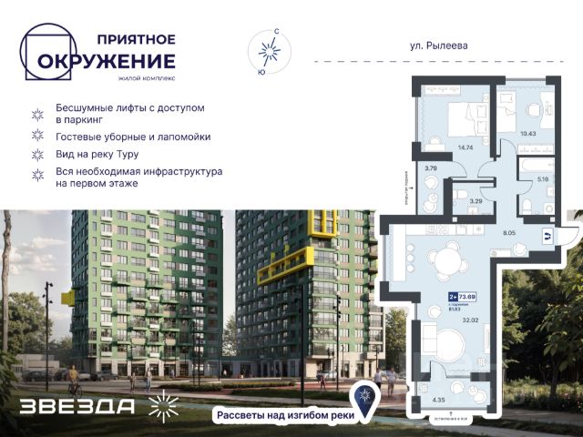 Квартира с кухней-гостиной и двумя спальнями в Октябрьском на Туре. Особенности планировки: вид во двор, мастер-спальня, предчистовая отделка, разнесённые спальни, тёплая лоджия. квартиры в нашей базе: ОКТ-08-2-2.9.5. Район Проект расположен на берегу реки, в одном из самых живописных и экологичных районов Тюмени. За последние годы облик района изменился. По соседству с индивидуальной застройкой выросли многоквартирные дома. При проектировании "Октябрьского на Туре" нашей приоритетной задачей стало сохранение природного ландшафта: мы постарались деликатно вписать в него современную архитектуру. Квартал удачно расположен с точки зрения дорожной инфраструктуры. На автомобиле путь до центра города составит 15 минут. Добраться до набережной и главных тюменских достопримечательностей можно и на общественном транспорте. В пешей доступности находится автобусная остановка. Проект По мастер-плану здесь будет восемь домов. Ядро застройки составляют замкнутые кварталы переменной этажности. Их высотность понижается по мере приближения к реке. На углах участка мы разместили башни-доминанты. Одной из достопримечательностей квартала станет парк на Туре — здесь появится зеленая зона протяженностью около 6 километров для пеших и велопрогулок. Смысловая ось квартала — широкая главная улица с высаженными вдоль неё высокими деревьями. Они создают тень и работают как шумо- и пылезащитные экраны. Это место сосредоточения основных пешеходных и транспортных потоков, на сторону которых мы ориентировали большинство коммерческих помещений. Отсюда жители могут свернуть на тихие соседские улицы и попасть на внутриквартальную площадь — ещё одну точку притяжения. #22DuDl