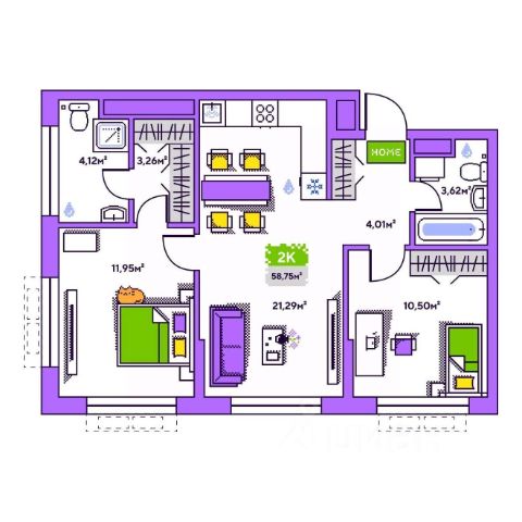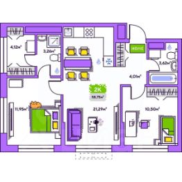 Функциональная планировка, включает в себя просторную кухню-гостиную с выходом на застекленную панорамными окнами лоджию, большие, правильной формы изолированные комнаты, просторный коридор.