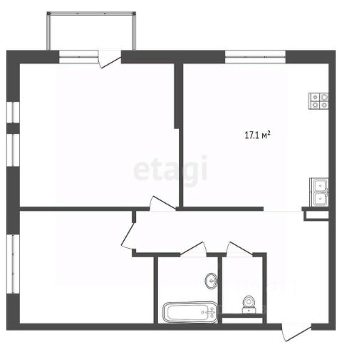 кухня (15,1 м2 ) — удобная рабочая зона, достаточно места для кухонного гарнитура и обеденного уголка;