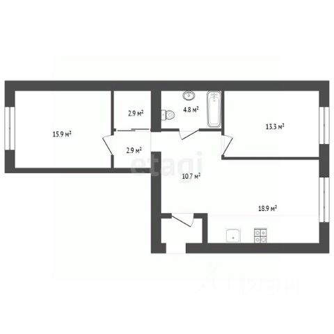 Просторная двухкомнатная квартира с предчистовой отделкой в ЖК "Республики 205" на 9 этаже. Общая площадь: 60.26 кв.м., жилая: 24 кв.м., площадь просторной кухни-гостиной: 17.8 кв.м. Комнаты изолированные, все окна выходят на одну сторону. В квартире одна лоджия, один совмещенный и один раздельный санузел. Высота потолков 2.6 м.