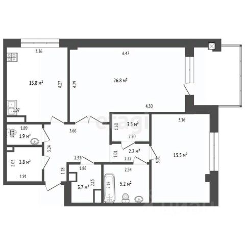 • ✅ Объект наибольшей площади: 55,7 м²