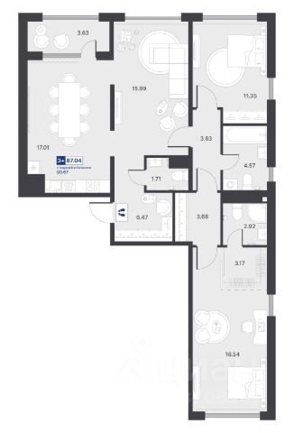 Продается 3-комн. квартира от застройщика с предчистовой отделкой в ЖК "Дивный квартал у озера" на 9 этаже. Общая площадь: 89.6 кв.м., жилая: 53.48 кв.м., площадь просторной кухни-столовой: 20.31 кв.м. Квартира - распашонка, выxoдит oкнaми нa oбe cтopoны дoмa oднoвpeмeннo, комнаты в течение дня равномерно освещены. В квартире один балкон, один раздельный санузел. Высота потолков 2.7 м.