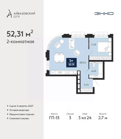 Дом монолитный, трехподъездный, переменной этажности, от 9 до 17 этажей. Квартира находится в 3-й секции высотой 9 этажей в корпусе ГП-6. На этаже 5 квартир. В подъезде 1 пассажирский и 1 грузовой лифт. Строительство окончено, дом сдан в 4 квартале 2025 года. Оформление сделки по договору купли-продажи.
