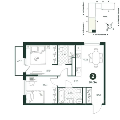 • ✅ Минимальная площадь: 55,7 м²