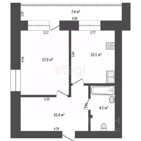 Комната 13,8кв.м., кухня 10,10кв.м, просторный функциональный коридор 10кв.м., в котором можно организовать вместительную гардеробную или поставить диван. Кухонный гарнитур, электроплита, холодильник, стиральная машина и шкаф в коридоре для одежды остаются при продаже.