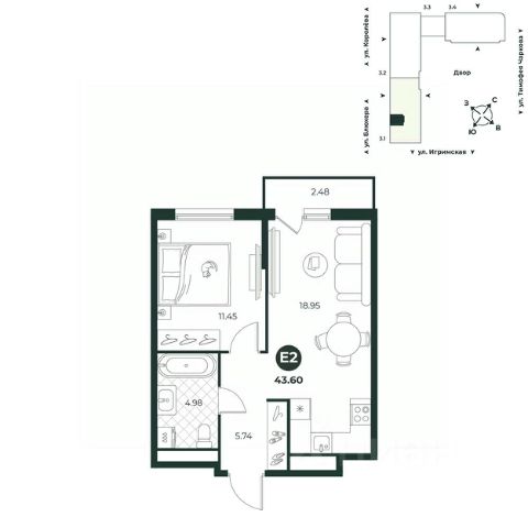 Евродвухкомнатная квартира с мастер-спальней, оборудованной гардеробной. Просторная кухня-гостиная позволяет разместить большой стол, за которым будет приятно собираться всей семьей и играть с друзьями в настольные игры. С французского балкона открывается вид на променад. В прихожей достаточно места для размещения шкафа с одеждой.