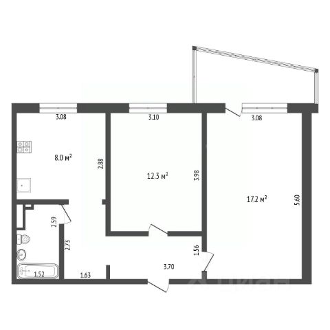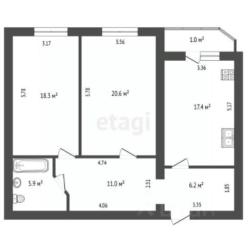 • Общая площадь: 50,8 кв. м.