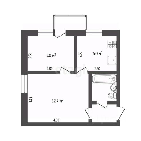 Комнаты 9 м2 и15 м2, кухня 7,9 м2.