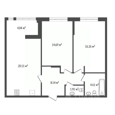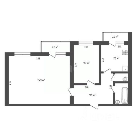 Квартира формата 2+ (евро трёшка) с современным ремонтом