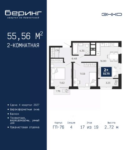 Продается 2-комн. квартира с предчистовой отделкой в ЖК "Беринг" на 2 этаже. Общая площадь: 55.07 кв.м., жилая: 21.37 кв.м., площадь просторной кухни-столовой: 20.37 кв.м. Комнаты изолированные, все окна выходят на одну сторону. В квартире один балкон, два совмещенных санузла. Высота потолков 2.72 м. Дом монолитный, черырехподъездный, переменной этажности, от 19 до 24 этажей. Квартира находится во 2-й секции высотой 19 этажей в корпусе ГП-76. На этаже 8 квартир. В подъезде 1 пассажирский и 1 грузовой лифт. Окончание строительства - 4 квартал 2027 года. Оформление сделки по договору долевого участия. Подобно знаменитому исследователю, мы чувствуем себя первооткрывателями этой локации. Хотим показать новую суть места, сформировать для вас жизненный опыт, которого ещё не было. Беринг — район зелёного цвета. Беринг — район, который откроется вам с другой стороны. Впечатлит новым уровнем комфорта и качеством жизни. Беринг — открытие на карте города. Первый квартал расположен в районе Тура, в границах улиц: Камчатская Западносибирская Энтузиастов. Вокруг уже есть всё для того, чтобы ежедневная рутина была лишь частью жизни и не доставляла дискомфорта. Школы и детские сады, магазины и аптеки, поликлиника, места для семейного отдыха, пеших и велопрогулок, и даже рыбалки. Масштабное озеленение дворов — визитная карточка ЭНКО и ваш оазис спокойствия, чтобы отвлечься от повседневности. Раскидистые деревья, кустарники, травы и цветы — осталось остановиться, вдохнуть и расслабиться, глядя на эту природную красоту. Стилистика подъездов продолжает концепцию Беринга, вдохновлённого Камчаткой: сдержанный, но при этом впечатляющий дизайн соседствует с удобством и функциональностью. #z6mcID Купить 2-комнатную квартиру в ипотеку в микрорайоне Энтузиастов в городе Тюмень.