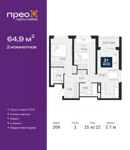 Евродвухкомнатная квартира площадью 51,5 м². Планировка с лоджией и окнами на две стороны. В квартире просторный холл — можете поставить там шкаф для хранения вещей. В спальне тоже есть для них ниши. Кухня-гостиная с зонированием: хватит места для готовки и зоны отдыха. В квартире выполнена предчистовая отделка, поэтому ремонт пройдёт проще и быстрее. Стены выровнены и оштукатурены, пол готов к финишному покрытию. Установлены входная сейф-дверь, пластиковые окна, розетки и выключатели. Квартал построен в районе ул. Ямской. Все дома сданы. Здесь всё для заботы о современном человеке: мало соседей на этаже и большой лес для контакта с природой прямо в городе. Дворы — закрыты от машин. Там установлены развивающие детские площадки, шезлонги для отдыха и перголы с гирляндами. Для безопасности по периметру домов работает видеонаблюдение. На минус первом этаже расположены кладовые. Они разной площади и предназначены для хранения вещей, которые занимают много места в квартире: зимний спортивный инвентарь, ненужная мебель или сезонная резина. В районе развивается инфраструктура: уже в этом году появится досуг-маркет с супермаркетом, аптеками и пунктами выдачи. ЖК построил ПСК Дом девелопмент — застройщик с фокусом на развитие Тюмени с 26-летним опытом на рынке недвижимости. Способы покупки: — ипотечные программы — обмен вашего жилья на новую квартиру — дистанционная покупка — рассрочка Узнать дополнительную информацию и записаться на встречу в офисе продаж можно по номеру, указанному в объявлении. 2-комнатной квартиры в ипотеку в округе Калининский в городе Тюмень.