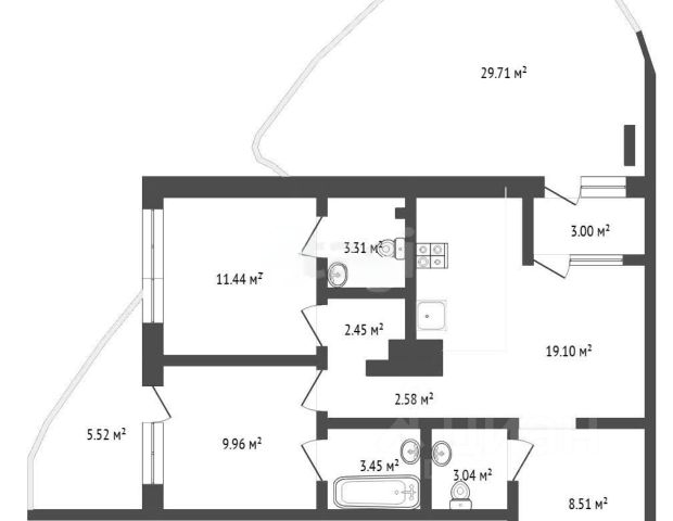 Эта квартира отличается продуманностью пространства и высоким качеством исполнения даже на этапе черновой отделки, которая выполнена в улучшенном варианте. Здесь предусмотрена просторная кухня-гостиная 19 кв.м. с тёплой лоджий (которую можно объединить с комнатой) и выходом на шикарную террасу 29 кв.м., две спальни, одна из них мастер-спальня со своим санузлом, другая спальня с гардеробной и выходом на другую террасу 5,5 кв. м. В спальне, выходящей на террасу, и кухне-гостиной - большие панорамные окна, наполняющие пространство естественным светом.