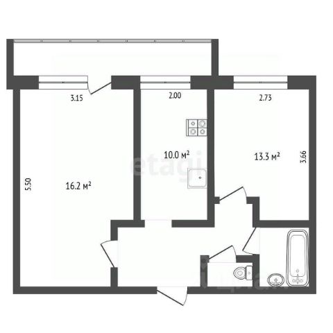 Продается 2к квартира 47.4 кв.м., 2 этаж, в центре поселка Винзили, Тюменский район.