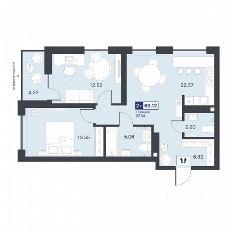 Продаётся 2-комнатная квартира в строящемся доме (ГП-1), срок сдачи: I-кв. 2027, общей площадью 63.12 кв.м., на 4 этаже. Новый жилой комплекс от Специализированного застройщика "Звезда" расположен в г. Тюмень по ул. Рылеева.
