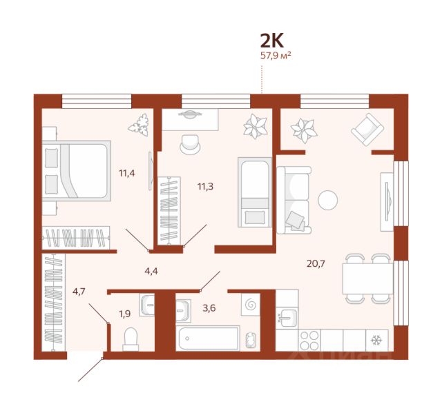 • ✓ В базе Циан 130 2-комнатных квартир в кирпично-монолитном доме в микрорайоне Электрон в городе Тюмень