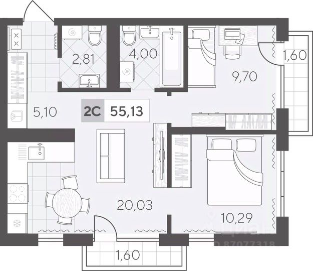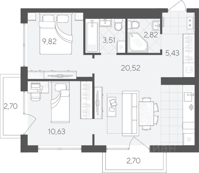 Квартал в Комарово Парк — шесть домов переменной этажности и два наземных паркинга, которые формируют уютную квартальную застройку, органично вписываясь в природное окружение. Здесь можно наслаждаться тишиной, сохраняя доступность городской инфраструктуры. Комарово Парк — это новый район города с собственной инфраструктурой, расположенный в черте города и в то же время рядом с природой. Квартира с двумя спальнями площадью 64.45 кв.м на 5 этаже. Продуманная геометрия комнат позволит легко зонировать пространство для личного досуга и места, где удобно проводить время с семьей или встречать гостей.