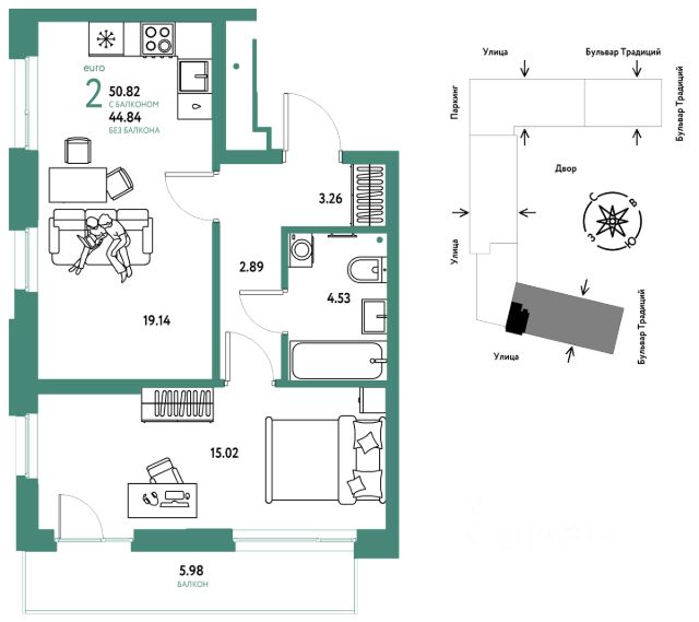 Объявление от застройщика Страна Девелопмент. Покупка квартиры защищена банком. Продается 2комнатная квартира на 12 этаже от застройщика Страна Девелопмент. Площадь квартиры 45,06 кв. м. О ПРOЕКТЕ Mикpорайон "Домaшний" — этo 6 очередей стpоитeльcтвa, 24 дома пеpемeннoй этажнoсти. Каждый дом уникальный. Внутри микрорайона появится огромный пешеходный бульвар — бульвар Традиций. Центром притяжения станут открытые пространства для отдыха жителей и гостей микрорайона, которые легко меняются под сезонные сценарии отдыха: новогодняя елка, ярмарки, кинопоказы и т.д. У каждого дома обустроен приватный двор с зонами для активного и спокойного отдыха. В активной зоне детские разновозрастные площадки с горками, песочницами и качелями, воркаут-зоны. В спокойной — скамейки, мини-амфитеатры, закрытые перголы. Уютной атмосферу сделает обильное озеленение и освещение "домашними" торшерами. ОТДЕЛКА Квартиры сдаются с предчистовой отделкой. Все грязные работы выполнены: произведена разводка электричества и отопления; выполнена стяжка пола; стены выровнены "под маяк". В квартире установлены розетки, выключатели и радиаторы. На входе — надежная стальная дверь. Вам остается только выбрать материалы и начать ремонт Доступна опция "Ремонт от застройщика". Стоимость можно включить в ипотеку. КУХНЯ С ТЕХНИКОЙ Теперь дополнительно к ремонту можно заказать кухню со встроенной техникой. Эргономику и функциональное наполнение разработали под каждую планировку. ПОЛНАЯ МЕБЛИРОВКА Больше не нужно тратить время даже на подбор, доставку и сборку мебели.Вы можете включить в стоимость квартиры с ремонтом полную меблировку. Что входит в меблировку? - Кухня с техникой и сантехникой - Диван - Кровать - Шкаф в спальне - Шкаф в прихожей
