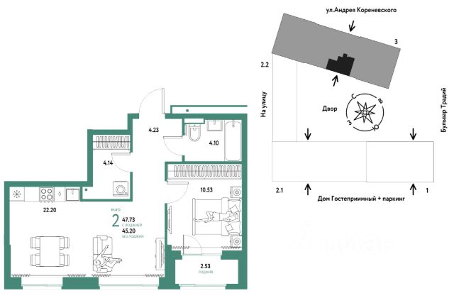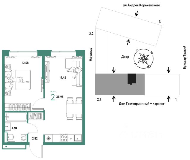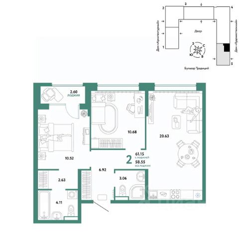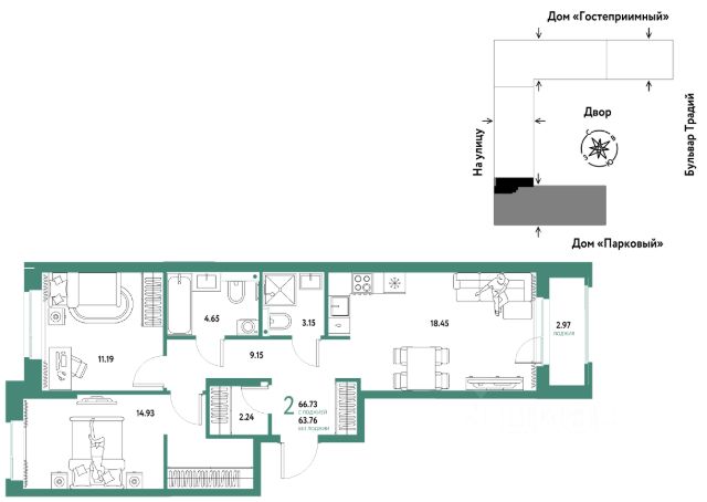 Квартира комфорт 2 +- 56,9 м 2, 6/16 эт Собственник. Квартира без обременений. , в новом ЖК " Домашний" дом Театральный. Дом сдан в 2025 году. Новая школа, 2 детских сада в шаговой доступности. Закрытый, безопасный двор, с видео наблюдением, системой умный дом. Современная детская площадка, лаунж-зона. Подъезд сквозной с прозрачной входной группой с колясочной, для сезонного транспорта. Доступ в дом и колясочную по смарт ключу. В квартире просторная кухня гостинная 15,9м2 спальня 11,8м 2, спальня 10,3 м 2, 2 санузла 2,67м 2, 3, 54 м2, гардеробная 2, 04м 2, коридор 9, 77 м 2. На первом этаже дома в межкорпусном помещении планируется открытие продуктового маркета, в остальных- маркет плейсы, салоны, булочные, кафе. Внутри ЖК обустраивается пешеходная зона отдыха "Бульвар традиций"хорошая транспортная развязка с выездами в различные районы города. В ЖК курсирует несколько автобусных и маршрутных такси. Есть машино-место в капитальном паркинге 2 этаж 13,3 м 2. цена с паркингом 7990000р.