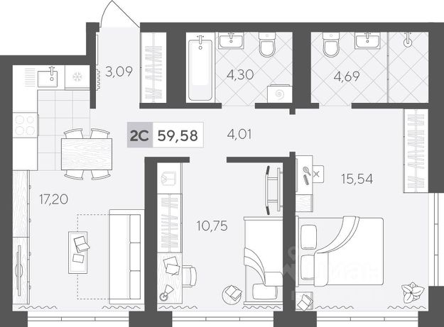 • ✓ В базе Циан 85 2-комнатных квартир в кирпично-монолитном доме на улице Сергея Корепанова в городе Тюмень