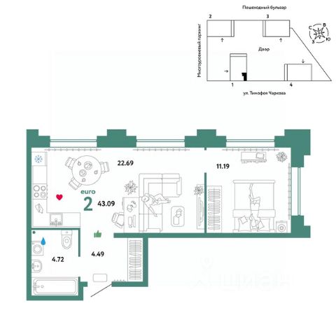 Продается 2комнатная квартира от застройщика "Страна Девелопмент". Стоимость указана без учета акций. Квартира на 11 этаже, площадь квартиры 55,54 кв. м. Сдача — в 3 квартале 2025 года. Четыре 32-этажные башни со смещенными осями, объединенные общим стилобатом. На крыше дома появятся детские и спортивные площадки, зоны для релакса и отдыха. А в самом стилобате — торговая галерея и паркинг. У жителей будет свой сад с площадкой для йоги и воркаута, а еще с лаунж-зонами для чтения книг и пикников в тени деревьев. Пока вы занимаетесь спортом или отдыхаете, дети смогут вдоволь набегаться на детских площадках. "Звездном" есть планировочные решения под потребности каждой семьи. Среди их особенностей — просторные кухни-гостиные, мастер-спальни, гардеробные и кладовые. А для тех, кто ищет особенный вариант — двухуровневые квартиры с отдельным входом и квартиры с бильярдной или фитнес-залом. ОТДЕЛКА: Мы сдаем квартиры с предчистовой отделкой. Всё уже готово к ремонту: выведена разводка электричества и отопления, выполнена стяжка пола, стены выровнены. Вам останется выбрать материалы и приступить к ремонту. При покупке квартиры в ЖК "Звездный" можно включить стоимость ремонта в ипотеку. Застройщик предлагает три варианта цветовых решений: натуральный, светлый или тёмный. СПОСОБЫ ПОКУПКИ: Сотрудники Страны Девелопмент будут сопровождать вас на каждом этапе сделки, помогут получить одобрение по ипотеке или снизить ежемесячный платеж. -Ипотека -Материнский капитал -100% оплата наличными