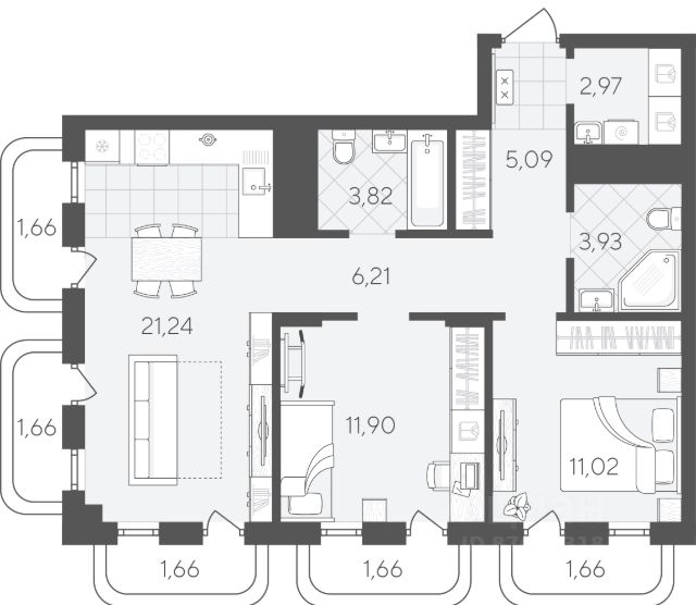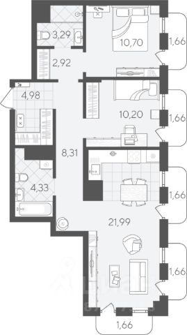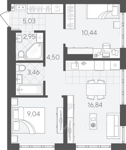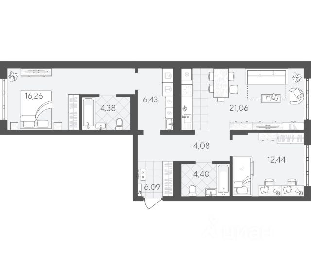 Квартира 332 на 4 этаже. "Скандиа. Квартал в Слободе" — современная комплексная застройка в развитом районе, состоящая из двух домов переменной этажности и двух многоуровневых паркингов. Доминантами проекта станут две 24-этажные секции. Квартал расположен через дорогу от гимназии 4, рядом со сквером Вьюжный и лесопарком. В шаговой доступности 2 детских сада, остановка общественного транспорта, поликлиника, магазины и кофейни. Квартира с 2 спальнями площадью 52,26 кв.м Продуманная геометрия комнат позволит легко зонировать пространство и подобрать необходимую мебель. В кухне-гостиной комфортно вместе готовить, проводить семейные ужины или настольные игры с друзьями. Один из двух санузлов можно оборудовать под функциональную постирочную. Необходимые коммуникации уже проведены, осталось только подключить стиральную машину и организовать место для сушки вещей.