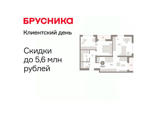 Продаётся квартира площадью 53.75 м2 в жилом комплексе "Смородина". Квартира находится на 4 этаже, жилая площадь квартиры 22.4 м2, площадь просторной кухни — 16.71 м2. Среди особенностей планировки — изолированные комнаты с окнами на одну сторону, 1 совмещённый санузел. Срок сдачи — IV кв. 2026 Жилой комплекс "Смородина" — это: - уютный малоэтажный комплекс в районе ММС - дома высотой 4 этажа - квартиры от студий до семейных вариантов с отапливаемыми лоджиями - экологичные материалы в благоустройстве территории Окружение В 5 минутах ходьбы от проекта — озеро Липовое с песчаным пляжем и лесопарковая зона. Инфраструктура В шаговой доступности есть все для комфортной жизни: школы, детские сады, магазины и аптеки. Рядом с проектом — остановка общественного транспорта. Благоустройство Прямо во дворе — собственные грядки для жителей, где можно выращивать зелень и цветы. Для детей оборудованы детские площадки из натуральных материалов. Лобби Вдохновленные современными тенденциями наши парадные разработаны с акцентом на эстетическую привлекательность и практичность. Использование натуральных материалов и ярких цветовых акцентов создает атмосферу уюта и стиля. Планировки Среди многообразия продуманных планировок есть и уютные студии, и просторные семейные варианты. Во всех квартирах предусмотрены отапливаемые лоджии, где можно устроить зону отдыха или рабочий кабинет.