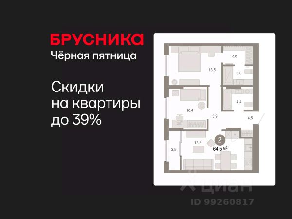 • ✓ В базе Циан 55 2-комнатных квартир на последнем этаже в микрорайоне ДОК в городе Тюмень