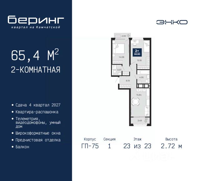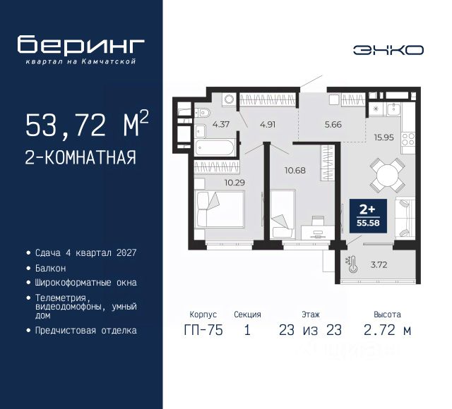 Двухкомнатная квартира в ЖК "Беринг" на 17 этаже. Квартира без отделки, новый владелец может сделать ремонт по своему проекту. Общая площадь: 48.48 кв.м., жилая: 22.47 кв.м., площадь просторной кухни-столовой: 11.67 кв.м. Угловая квартира, окна oбecпeчивaют paвнoмepнoe ocвeщeниe в тeчeниe дня. В квартире одна лоджия, один совмещенный санузел. Высота потолков 2.75 м. Дом монолитный, многоподъездный, переменной этажности, от 9 до 21 этажей. Квартира находится во 2-й секции высотой 17 этажей в корпусе ГП-74. На этаже 7 квартир. В подъезде 1 пассажирский и 1 грузовой лифт. Окончание строительства - 4 квартал 2025 года. Оформление сделки по договору долевого участия. Подобно знаменитому исследователю, мы чувствуем себя первооткрывателями этой локации. Хотим показать новую суть места, сформировать для вас жизненный опыт, которого ещё не было. Беринг — район зелёного цвета. Беринг — район, который откроется вам с другой стороны. Впечатлит новым уровнем комфорта и качеством жизни. Беринг — открытие на карте города. Первый квартал расположен в районе Тура, в границах улиц: Камчатская Западносибирская Энтузиастов. Вокруг уже есть всё для того, чтобы ежедневная рутина была лишь частью жизни и не доставляла дискомфорта. Школы и детские сады, магазины и аптеки, поликлиника, места для семейного отдыха, пеших и велопрогулок, и даже рыбалки. Масштабное озеленение дворов — визитная карточка ЭНКО и ваш оазис спокойствия, чтобы отвлечься от повседневности. Раскидистые деревья, кустарники, травы и цветы — осталось остановиться, вдохнуть и расслабиться, глядя на эту природную красоту. Стилистика подъездов продолжает концепцию Беринга, вдохновлённого Камчаткой: сдержанный, но при этом впечатляющий дизайн соседствует с удобством и функциональностью. #zuSMTc