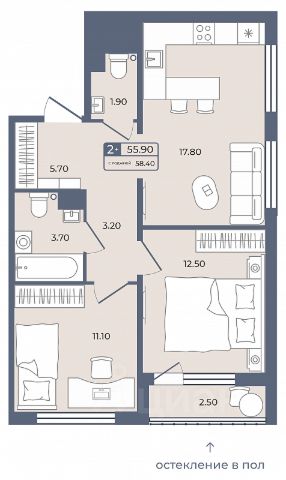Двушка 44,4 м² — светлая, тёплая, как утреннее солнце!
