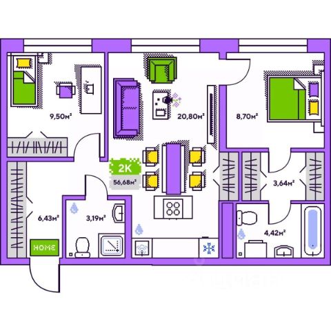 • ✅ Минимальная площадь: 42,1 м²