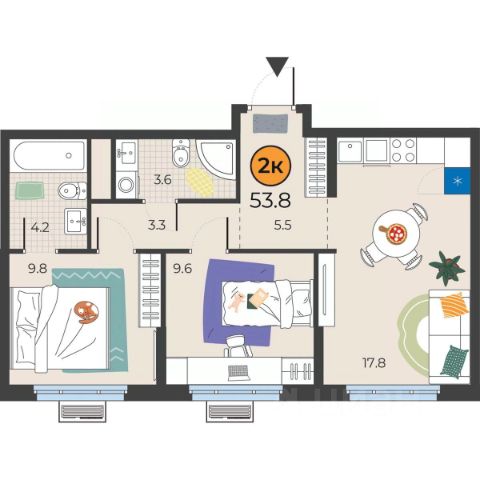 • ✅ Минимальная площадь: 53,9 м²