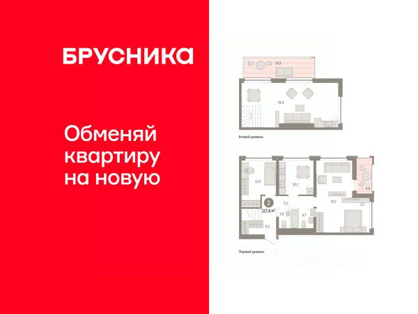 Просторная 2-комн. квартира с предчистовой отделкой в ЖК "Дом у озера" на 8 этаже. Общая площадь: 110.04 кв.м., жилая: 30.2 кв.м., площадь просторной кухни-гостиной: 22.5 кв.м. Комнаты изолированные, все окна выходят на одну сторону. В квартире один балкон и одна лоджия, два совмещенных санузла. Высота потолков 2.7 м. Дом монолитный, многоподъездный, переменной этажности, от 1 до 8 этажей. Квартира находится во 2-й секции высотой 8 этажей в корпусе 2. На этаже 6 квартир. В подъезде 1 грузовой лифт. Окончание строительства - 2 квартал 2026 года. Оформление сделки по договору долевого участия. Двухуровневая квартира с кухней-гостиной и двумя спальнями в Доме у озера. Особенности планировки: вид во двор, вид на озеро, второй санузел, двухуровневая, лоджия, мастер-спальня, окно в коридоре, предчистовая отделка, разнесённые спальни, терраса, терраса на крыше. квартиры в нашей базе: ДМУ-02-2-2.8.2. "Дом у озера" является продолжением "Европейского квартала". Он расположен в центре заречного района города. В 2030 году здесь появится квартал, состоящий из урбан-вилл, таунхаусов, секционных домов и башни. Вокруг уже сформирована необходимая инфраструктура: детские сады, школы, спортивный комплекс, продуктовые магазины, аптеки, кофейни, рестораны и салоны красоты. Путь до центра города занимает 7 минут на машине. Озеро Тихое — ценный рекреационный ресурс. Брусника вернула ему прежнее значение и сделала новой точкой притяжения для жителей микрорайона. Ключевым элементом концепции благоустройства стала вода. В каждой части квартала архитекторы нашли для нее свою форму. Вдоль пешеходных улиц разместили искусственные ручьи, на центральной площади — фонтан и дождевые сады. Основная точка притяжения жителей — озеро и выходящий на его сторону променад. Здесь мы организуем смотровые площадки и расположим летние террасы кафе и ресторанов. Тесную связь застройки с ландшафтом обеспечивает многоуровневое озеленение. Буфер из деревьев и кустарников по периметру квартала превращается в естественный ветрозащитный экран. Такое решение позволяет создать на территории "Дома у озера" комфортный микроклимат. Подъезды "Дома у озера" с прозрачными входными группами и большими лифтами. Для мест общего пользования архитекторы разработали новую интерьерную коллекцию, вдохновленную эклектичными восточными мотивами. В отделке сочетаются коричневый, желтый и белый цвета, повторяющие колористические решения фасадов. Декоративные перегородки, установленные в лобби, напоминают машрабию — элемент арабской архитектуры в виде узорной решетки. За счет мягкой мебели, многоуровневого освещения теплых оттенков и предметов декора (например, зеркал и картин) холлы воспринимаются как продолжение квартиры. #2scSvz