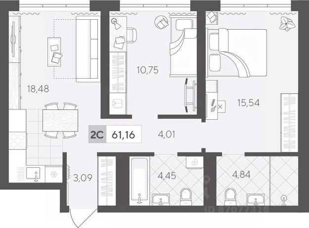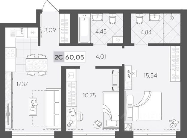 Продаётся 2-комнатная квартира в строящемся доме (ГП 2 (Сергея Корепанова, 34)), срок сдачи: IV-кв. 2027, общей площадью 50.99 кв.м., на 17 этаже. Новый жилой комплекс "Скандиа. Квартал у Леса" от Специализированного застройщика "СКАНДИА У ЛЕСА" расположен в г. Тюмень на ул. Бориса Прудаева.
