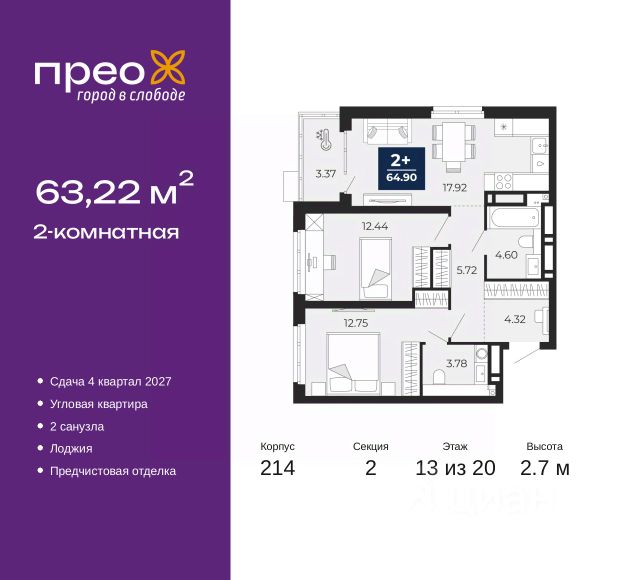 • ✅ Минимальная площадь: 57,8 м²