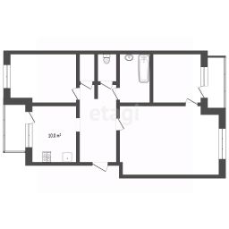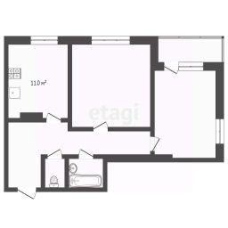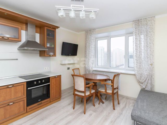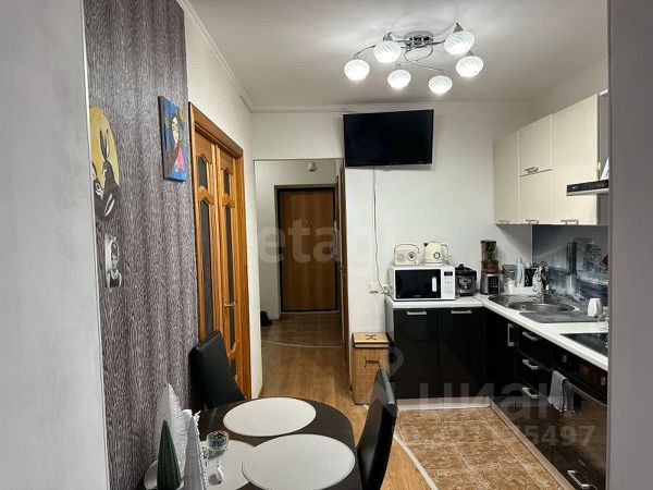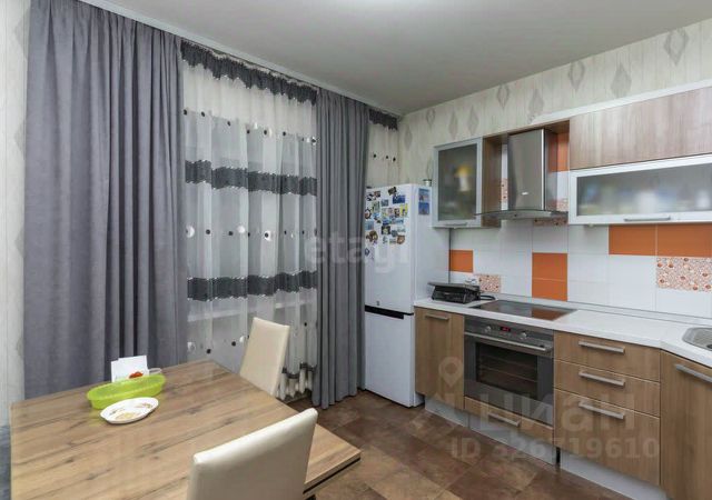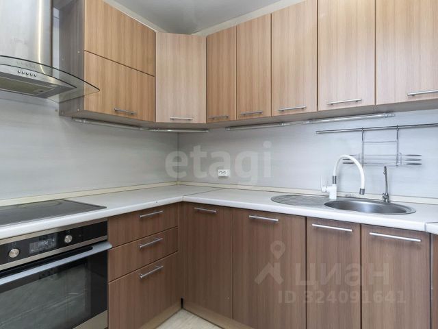При продаже остается кухонный гарнитур со встроенной техникой, холодильник, стиральная машинка, встраемые шкафы.