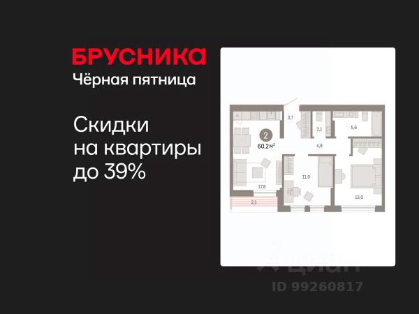 Эксклюзивные ипотечные условия. Обмен квартиры на новую. Предложение от застройщика. Квартира в рассрочку без процентов от застройщика. Квартира в счёт первоначального взноса по программе обмена. Дом будет сдан в 4 квартале 2025 года. Звоните, наши менеджеры вам все расскажут! Двухкомнатная квартира с предчистовой отделкой в ЖК "Республики 205" на 9 этаже. Общая площадь: 61.06 кв.м., жилая: 24 кв.м., площадь просторной кухни-гостиной: 16.8 кв.м. Комнаты изолированные, все окна выходят на одну сторону. В квартире одна лоджия, один совмещенный и один раздельный санузел. Высота потолков 2.6 м. Купить квартиру можно с помощью программ покупки от застройщика Брусника: - ипотека по эксклюзивной ставке с помощью в получении положительного кредитного решения через сервис ипотечный брокер; - квартиры в рассрочку без процентов от застройщика Брусника; - обмен квартиры на новую. Получить одобрение ипотеки или рассрочку, а также осуществить обмен квартир можно онлайн. Дом монолитный, многоподъездный, переменной этажности, от 9 до 17 этажей. Квартира находится в 8-й секции высотой 9 этажей в корпусе 1. На этаже 9 квартир. В подъезде 1 грузовой лифт. Начало строительства - 2 квартал 2023 года. Окончание строительства - 4 квартал 2025 года. Оформление сделки по договору долевого участия. Район Проект расположен в границах улиц Пермякова, Энергетиков, Воровского и Республики. До центра города — 10 минут на машине. Рядом — автомобильная развязка на пересечении улиц Пермякова и Республики. В шаговой доступности есть школы, детские сады, поликлиники, крупный торговый центр, автовокзал и несколько скверов. Проект "Республики 205" — это проект комплексного развития территории, уникальный по своему наполнению. Переосмысляя бывшую территорию завода медицинского оборудования, мы создадим новое место силы — микрорайон, насыщенный деловой, развлекательной, рекреационной, игровой, образовательной и медицинской инфраструктурой. До каждого полезного сервиса здесь можно будет дойти за 15 минут. Локальными центрами "Республики 205" будут общественные пространства — скверы, парки, бульвары и площади. В границах нашего участка мы намерены разместить школу, рассчитанную на 1550 учеников, два детских сада на 300 мест и встроенный детский сад на 100 мест. В одном из цехов бывшего завода расположится креативный кластер "Кузница". Он станет площадкой для нескольких институций — галереи, лектория, книжного магазина-библиотеки, кинобара и точек креативного pop-up-ритейла. Пешеходные бульвары внутри района соединят между собой улицу ресторанов, детские и спортивные площадки, событийную площадь и летний кинотеатр. Идентификатор квартиры по базе застройщика: МЕД01-01-8-8. #22edIg