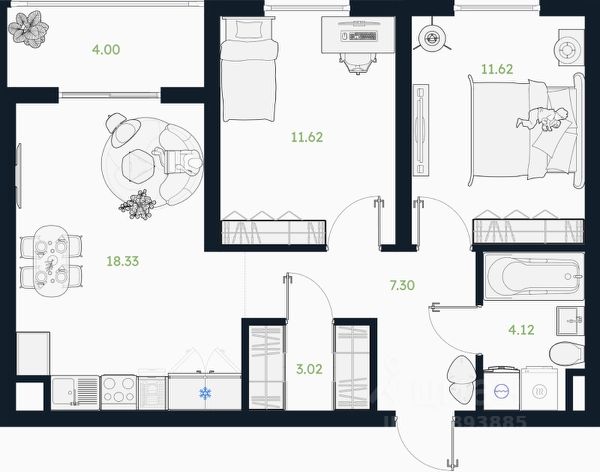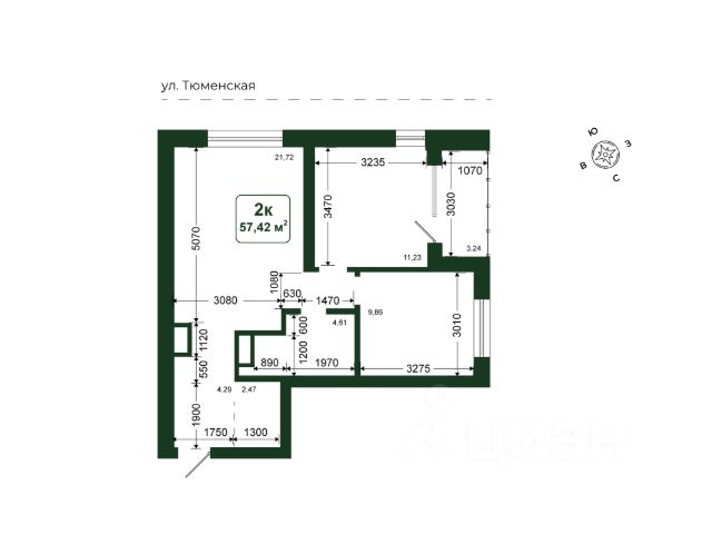 В ПРОДАЖЕ 2-комнатная квартира, площадью 58,7 кв.м., в ЖК "Андерсен Парк" - в районе Тюменская Слобода города Тюмени!