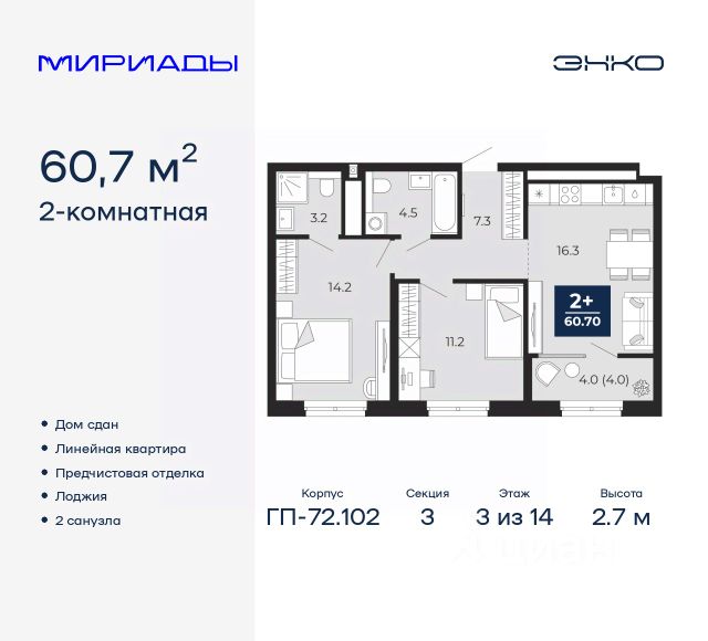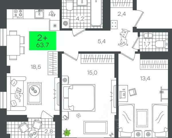 Эксклюзивные ипотечные условия. Квартира в рассрочку без процентов от застройщика. Дом будет сдан в 4 квартале 2025 года. По всем вопросам обращайтесь в офис продаж, мы вам все подробно расскажем. 2-комн. квартира с предчистовой отделкой в ЖК "Республики 205" на 6 этаже. Общая площадь: 69.69 кв.м., жилая: 21.4 кв.м., площадь просторной кухни-гостиной: 21 кв.м. Квартира угловая, идеально подойдет любителям тишины и панорамных видов. В квартире один балкон, один совмещенный и один раздельный санузел. Терраса размером 8.2 кв.м. представляет собой роскошную зону отдыха для проведение вечеров в кругу семьи и друзей или организация вечеринок. Высота потолков 2.6 м. Купить квартиру можно с помощью программ покупки от застройщика Брусника: - ипотека по эксклюзивной ставке с помощью в получении положительного кредитного решения через сервис ипотечный брокер; - квартиры в рассрочку без процентов от застройщика Брусника; - обмен квартиры на новую. Получить одобрение ипотеки или рассрочку, а также осуществить обмен квартир можно онлайн. Дом монолитный, многоподъездный, переменной этажности, от 9 до 17 этажей. Квартира находится в 1-й секции высотой 17 этажей в корпусе 1. На этаже 7 квартир. В подъезде 1 пассажирский и 1 грузовой лифт. Начало строительства - 2 квартал 2023 года. В настоящее время строительство завершено, дом сдан в 4 квартале 2025 года. Оформление сделки по договору купли-продажи. Район Проект расположен в границах улиц Пермякова, Энергетиков, Воровского и Республики. До центра города — 10 минут на машине. Рядом — автомобильная развязка на пересечении улиц Пермякова и Республики. В шаговой доступности есть школы, детские сады, поликлиники, крупный торговый центр, автовокзал и несколько скверов. Проект "Республики 205" — это проект комплексного развития территории, уникальный по своему наполнению. Переосмысляя бывшую территорию завода медицинского оборудования, мы создадим новое место силы — микрорайон, насыщенный деловой, развлекательной, рекреационной, игровой, образовательной и медицинской инфраструктурой. До каждого полезного сервиса здесь можно будет дойти за 15 минут. Локальными центрами "Республики 205" будут общественные пространства — скверы, парки, бульвары и площади. В границах нашего участка мы намерены разместить школу, рассчитанную на 1550 учеников, два детских сада на 300 мест и встроенный детский сад на 100 мест. В одном из цехов бывшего завода расположится креативный кластер "Кузница". Он станет площадкой для нескольких институций — галереи, лектория, книжного магазина-библиотеки, кинобара и точек креативного pop-up-ритейла. Пешеходные бульвары внутри района соединят между собой улицу ресторанов, детские и спортивные площадки, событийную площадь и летний кинотеатр. Идентификатор квартиры по базе застройщика: МЕД01-01-1-1. #2zoCmz 2-комнатная квартира в готовой новостройке в Тюмени.