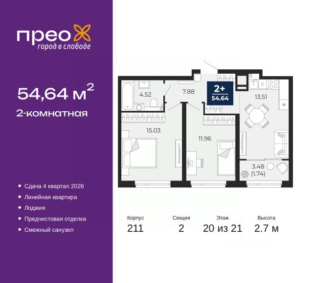 Квартира в счёт первоначального взноса по программе обмена. По всем вопросам обращайтесь в офис продаж, мы вам все подробно расскажем! Продается двухкомнатная квартира с предчистовой отделкой в Кварталы "На Минской" на 3 этаже. Общая площадь: 65.09 кв.м., жилая: 23 кв.м., площадь просторной кухни-гостиной: 21.3 кв.м. Комнаты изолированные, все окна выходят на одну сторону. В квартире одна лоджия, два совмещенных санузла. Высота потолков 2.7 м. Дом монолитный, многоподъездный, переменной этажности, от 7 до 11 этажей. Квартира находится во 2-й секции высотой 7 этажей в корпусе 2. На этаже 7 квартир. В подъезде 1 пассажирский и 1 грузовой лифт. Окончание строительства - 1 квартал 2027 года. Оформление сделки по договору долевого участия. Квартира с кухней-гостиной и двумя спальнями в кварталах "На Минской". Особенности планировки: балкон, вид во двор, гардеробная, мастер-спальня, предчистовая отделка, разнесённые спальни. квартиры в нашей базе: МНС02-Ж2.3.2. В сердце города Кварталы "На Минской" находятся в самом центре. За десять минут можно дойти до площади 400-летия Тюмени и Большого Драматического театра, Тюменского индустриального и медицинского университетов, спортивного комплекса "Строймаш", ТРЦ "Гудвин" и "Премьер", Тюменского технопарка. Поблизости много детских садов, школ и поликлиник. Пространство разного опыта Создавая кварталы "На Минской" мы вдохновлялись Хакскими дворами в Берлине и улицей Давида Агмашенебели в Тбилиси. И первые и вторая — яркие разнообразные пространства, сформированные прогрессивными архитекторами и притягивающие городских интеллектуалов. Престижная недвижимость здесь соседствует с барами, ресторанами, креативными кластерами и бюро, дизайнерскими лавками. Полезные улицы Кварталы "На Минской" свяжет сеть променадов, автомобильных проездов и велодорожек. Уличный фронт проекта мы сформируем с помощью аллейной посадки деревьев. Они создадут тень для ресторанов и кафе на первых этажах, визуально отделят проезжую и пешеходную части, снизят объём пыли и уровень шума. Мы реализуем проект в районе с развитой базовой инфраструктурой. И поэтому тщательно подошли к программированию коммерции, посчитав, что её основная задача — "закрывать" более высокие потребности жителей. Здесь может появиться пекарня с вкусными круассанами, турагентство на случай, если захочется перезимовать в Сочи, массажный кабинет, ресторан, когда надоело есть дома и многое другое. #2sFfmM Продается 2-комнатная квартира с отделкой от застройщика в Тюменской области.
